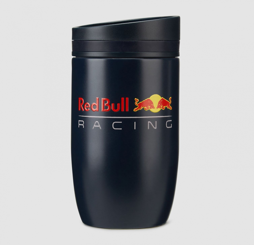 Cestovní hrnek Red Bull Racing. V týmových barvách a s logem týmu Red Bull Racing, s uzaviratelným pítkem a šroubovacím uzávěrem. Objem 350 ml. Materiál : nerezová ocel a plast. Red Bull Racing Travel Mug.