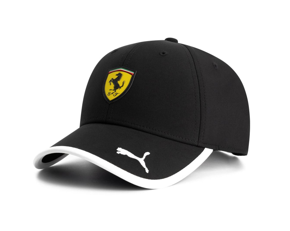 Čepice Ferrari Scudetto s kšiltem. Černá barva, nastavitelná velikost. Materiál : polyester. Ferrari Scudetto Cap.