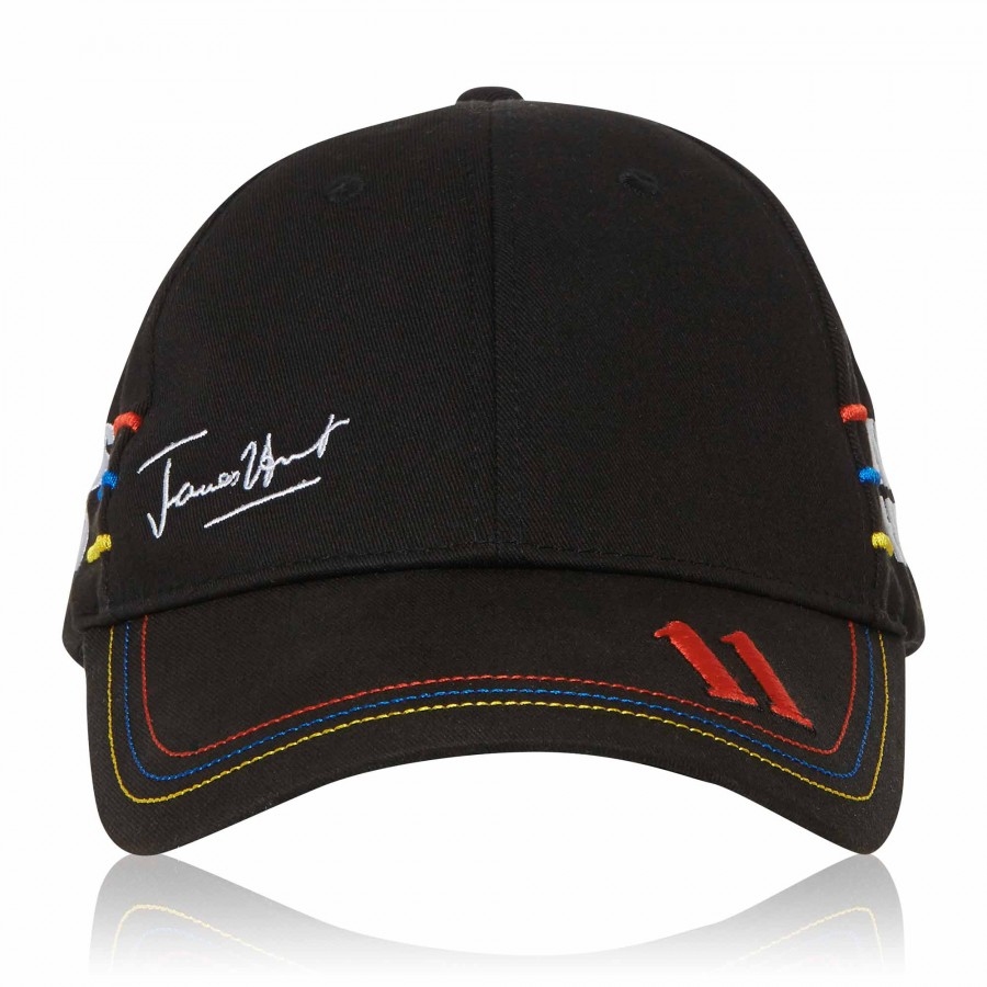 Kšiltovka James Hunt. Barva černá, s vyšitým jménem, startovním číslem a podpisem jezdce. Nastavitelná velikost. Materiál : 100% bavlna. James Hunt Cap.