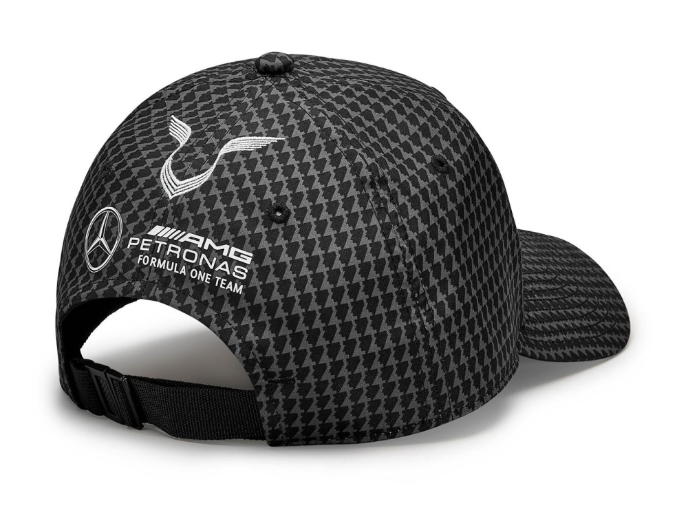Pánská čepice s kšiltem Lewis Hamilton. Barva černá, na přední straně logo Mercedes-Benz, na zadní straně osobní logo Lewise Hamiltona. Nastavitelná velikost. Materiál : polyester. Mercedes AMG F1 Lewis Hamilton Baseball Cap Black.