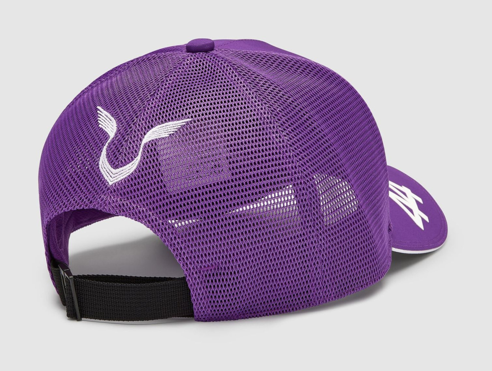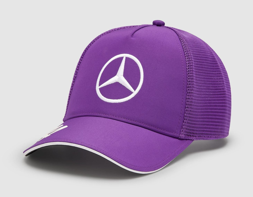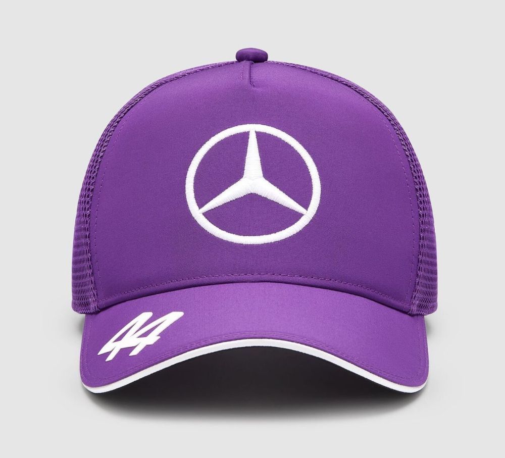 Pánská čepice s kšiltem Lewis Hamilton trucker. Barva fialová, na přední straně logo Mercedes-Benz, na zadní straně osobní logo Lewise Hamiltona. Nastavitelná velikost. Materiál : polyester. MAMGP Lewis Hamilton Trucker Team Purple Baseball Cap.
