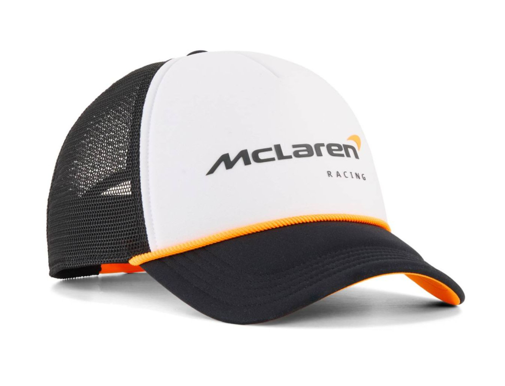 Kšiltovka McLaren F1 Trucker. Barva bílá, s logem McLaren na štítku, nastavitelná velikost. Zadní část z prodyšné síťoviny. Materiál : polyester. McLaren F1 Team Trucker Cap White.