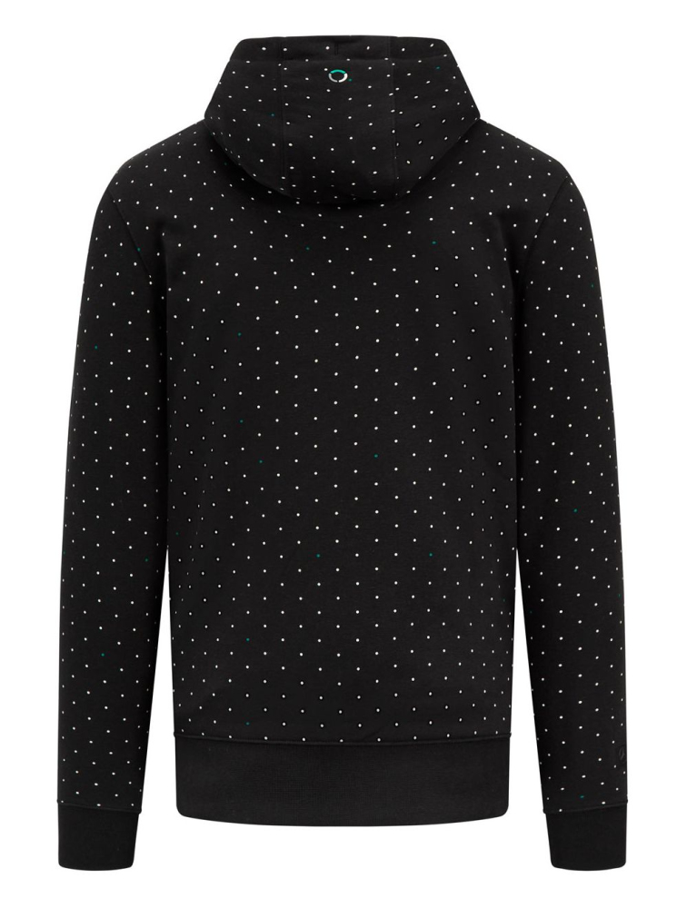 Pánská mikina s kapucí Mercedes AMG F1 DOT. Barva černá s bílými tečkami. Materiál : kombinace bavlna a polyester. Mercedes AMG F1 DOT Hoodie.