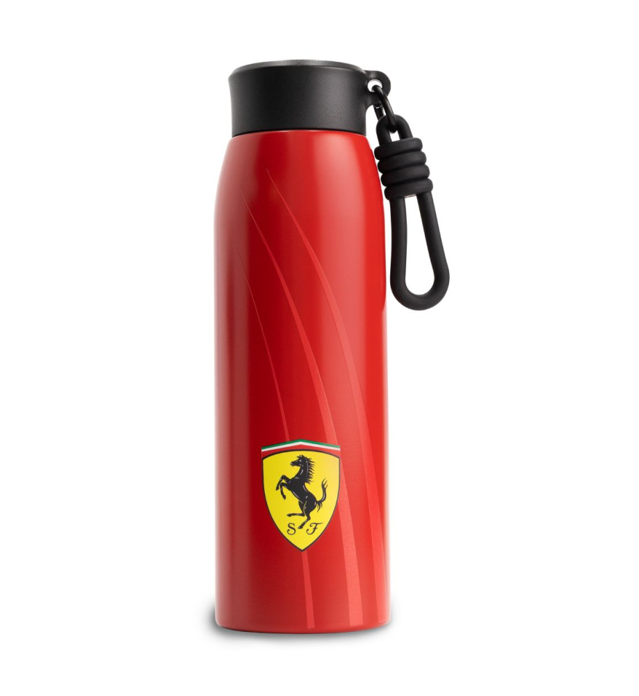 Láhev na vodu Ferrari. Barva červená, s logem Scuderia Ferrari, objem 600 ml. Materiál : nerezová ocel. Ferrari Race Water Bottle.