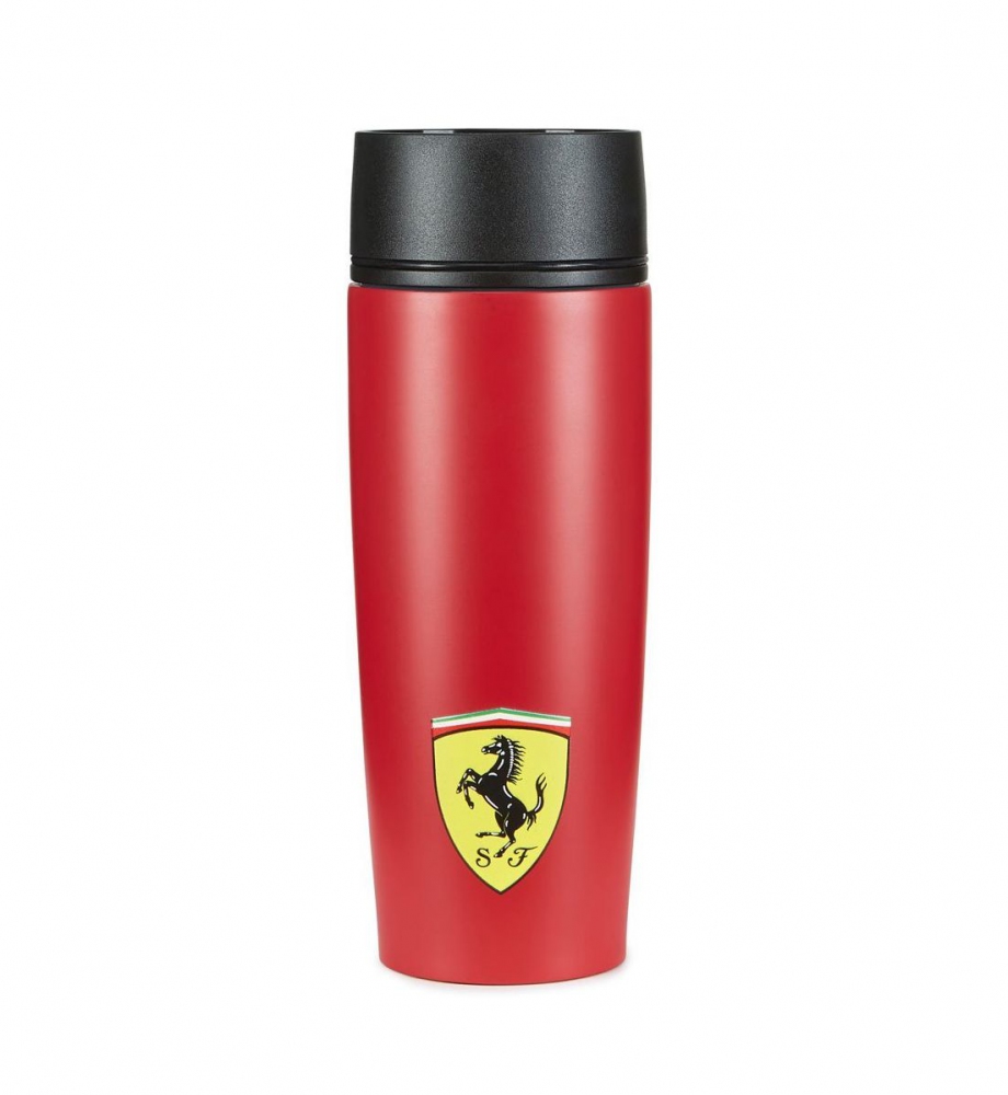 Termo hrnek Ferrari. Barva červená, s logem Scuderia Ferrari, objem 400 ml. Materiál : nerezová ocel a PVC. Ferrari F1 Thermal Mug Red.