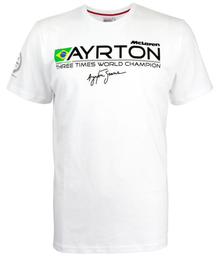Triko Ayrton Senna "World Champion" s krátkým rukávem. Barva bílá, s potiskem vysoké kvality. Materiál : 100% bavlna. Senna World Champion t-shirt.