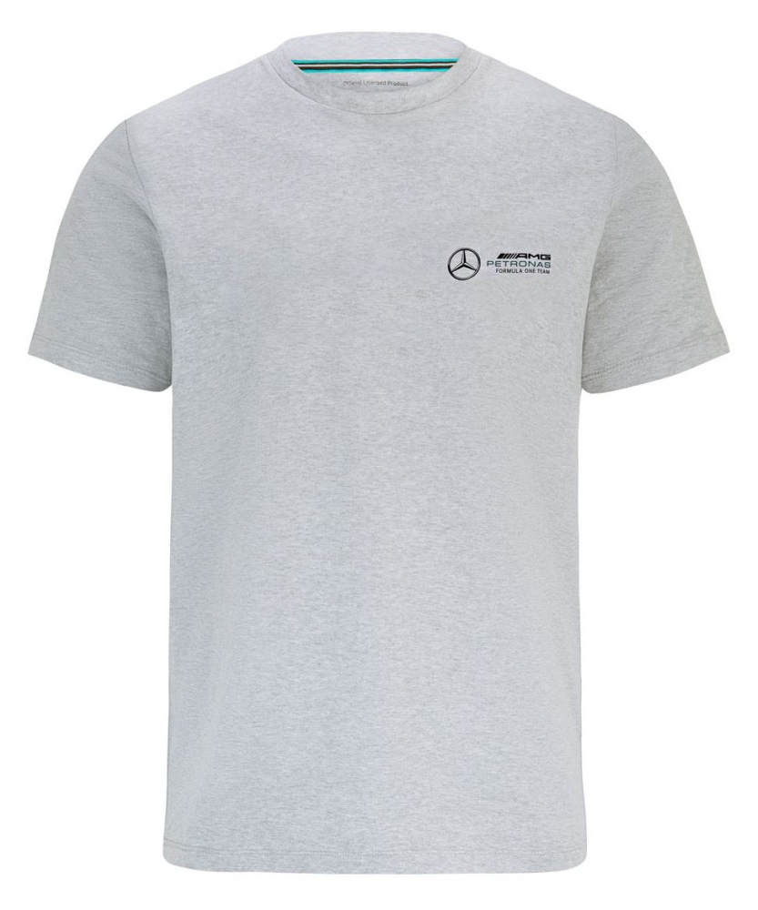 Pánské triko Mercedes AMG F1 Classic s krátkým rukávem. Barva šedá, s logem týmu na hrudi. Materiál : 100% bavlna. Mercedes AMG F1 Classic T-shirt Grey.