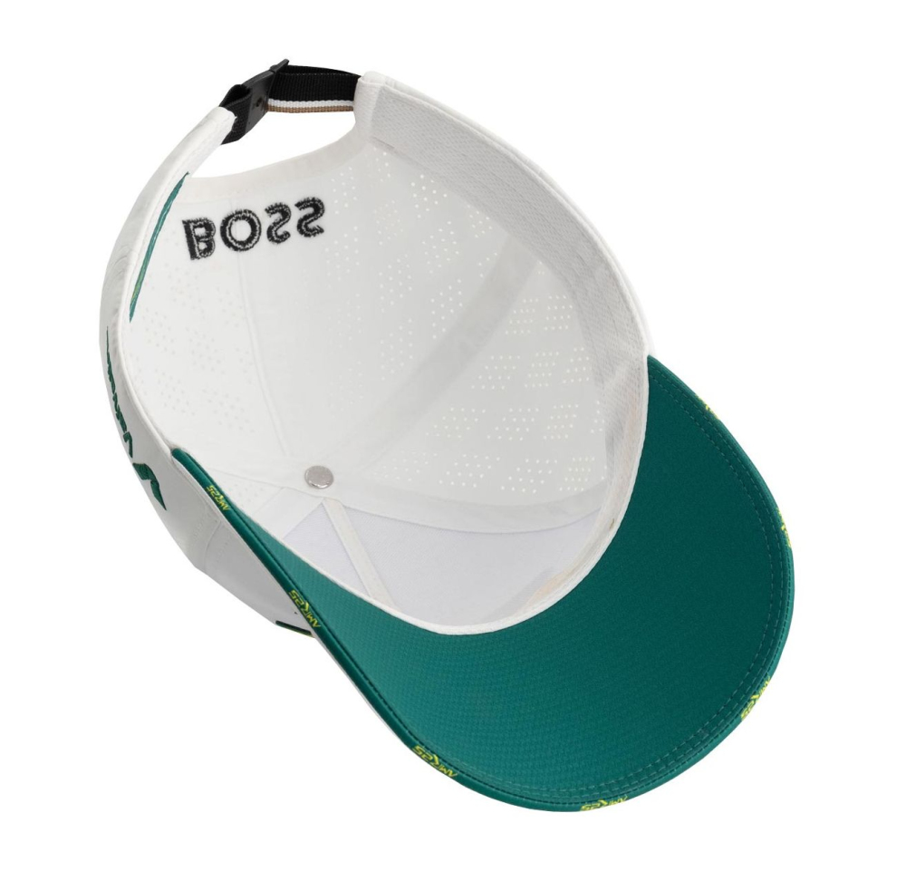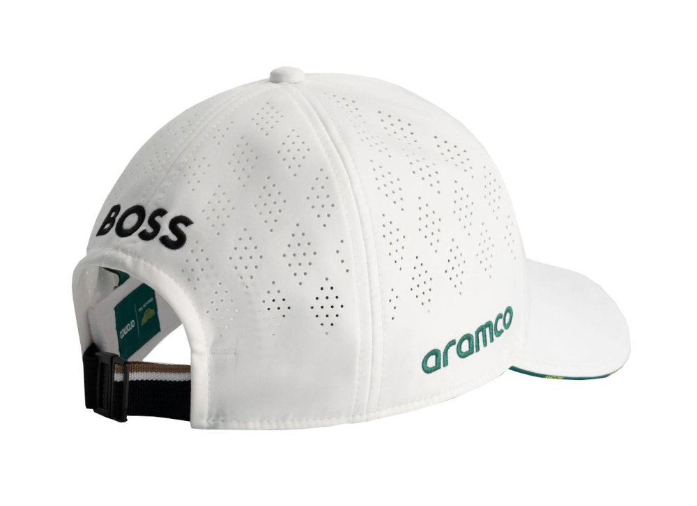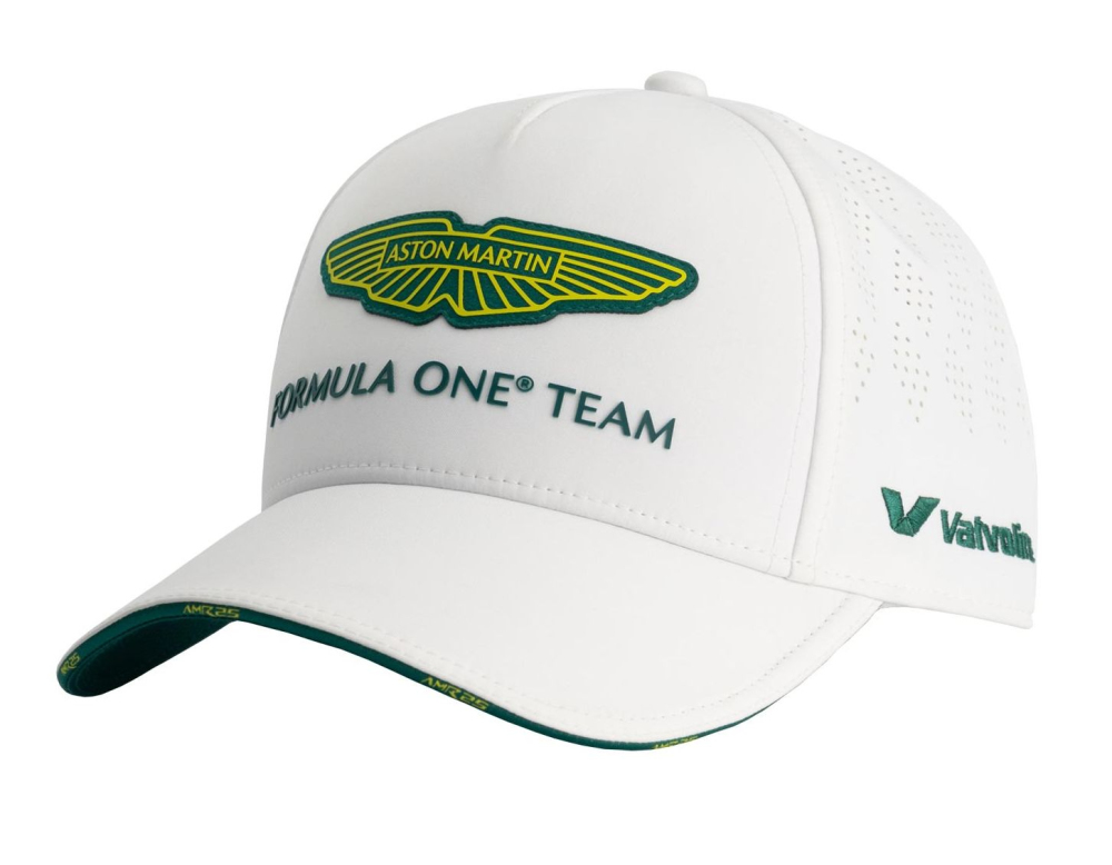 Týmová kšiltovka Aston Martin F1. V týmových barvách Aston Martin F1, s logem týmu a sponzorů. Nastavitelná velikost. Materiál : polyester. Aston Martin F1 Team White Baseball Cap.