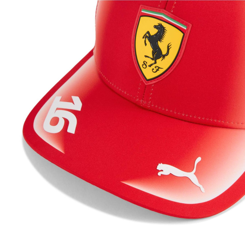Čepice Ferrari - Charles Leclerc s kšiltem. V týmových barvách Ferrari, na kšiltu se startovním číslem jezdce. Nastavitelná velikost. Materiál : polyester. Ferrari Mens Leclerc Team Cap.