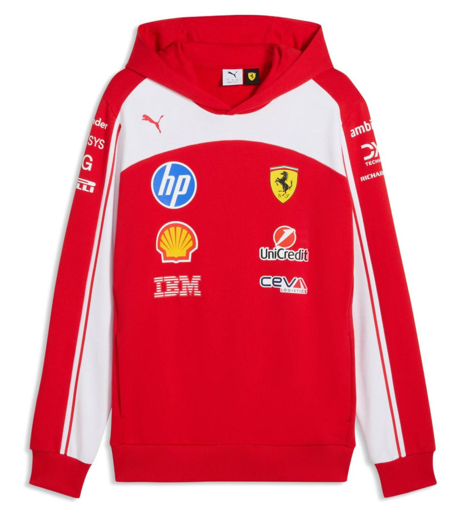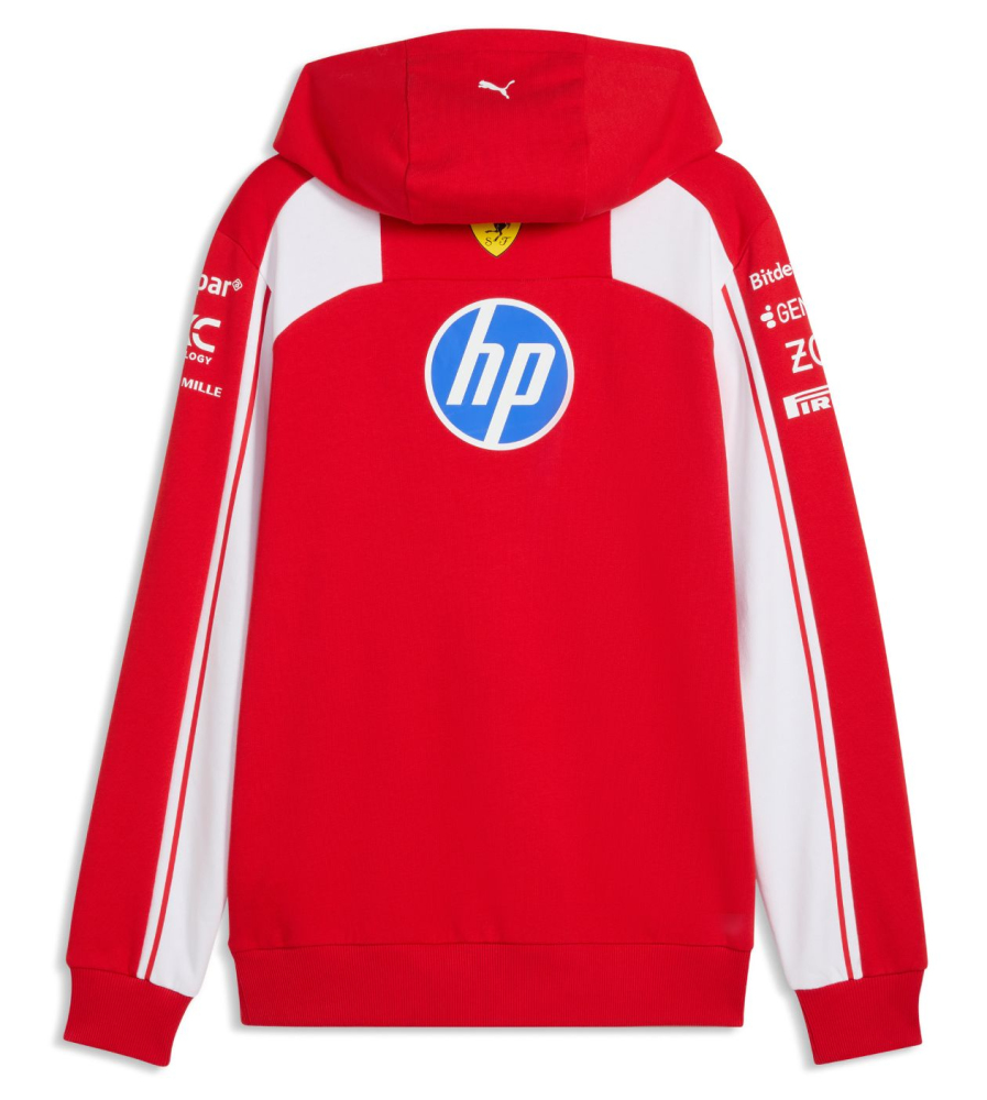 Týmová mikina Ferrari s kapucí. V týmových barvách stáje Ferrari, se znakem Scuderia Ferrrari a logy sponzorů. Vyrobeno z vysoce kvalitní bavlny. Ferrari F1 Men’s Hoodie Team Sweatshirt.