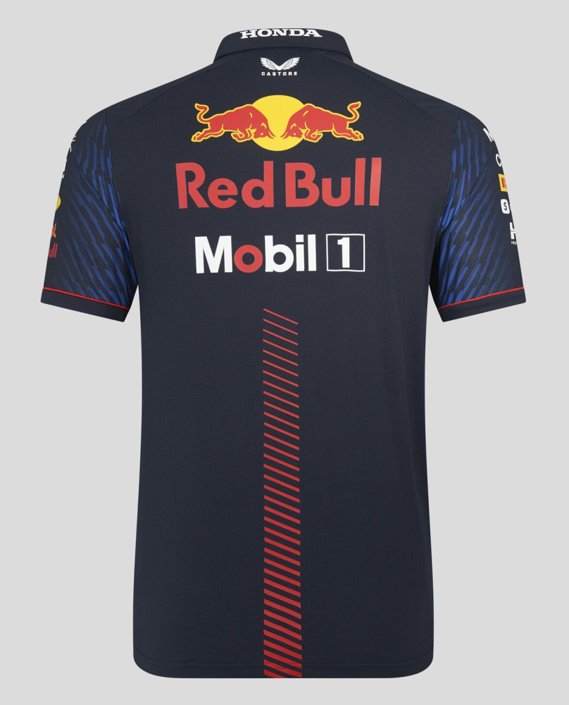 Týmové triko s límečkem Red Bull. V týmových barvách Red Bull Racing, s logy týmu a sponzorů. Materiál : polyester a elastan. Red Bull Team Polo Shirt.