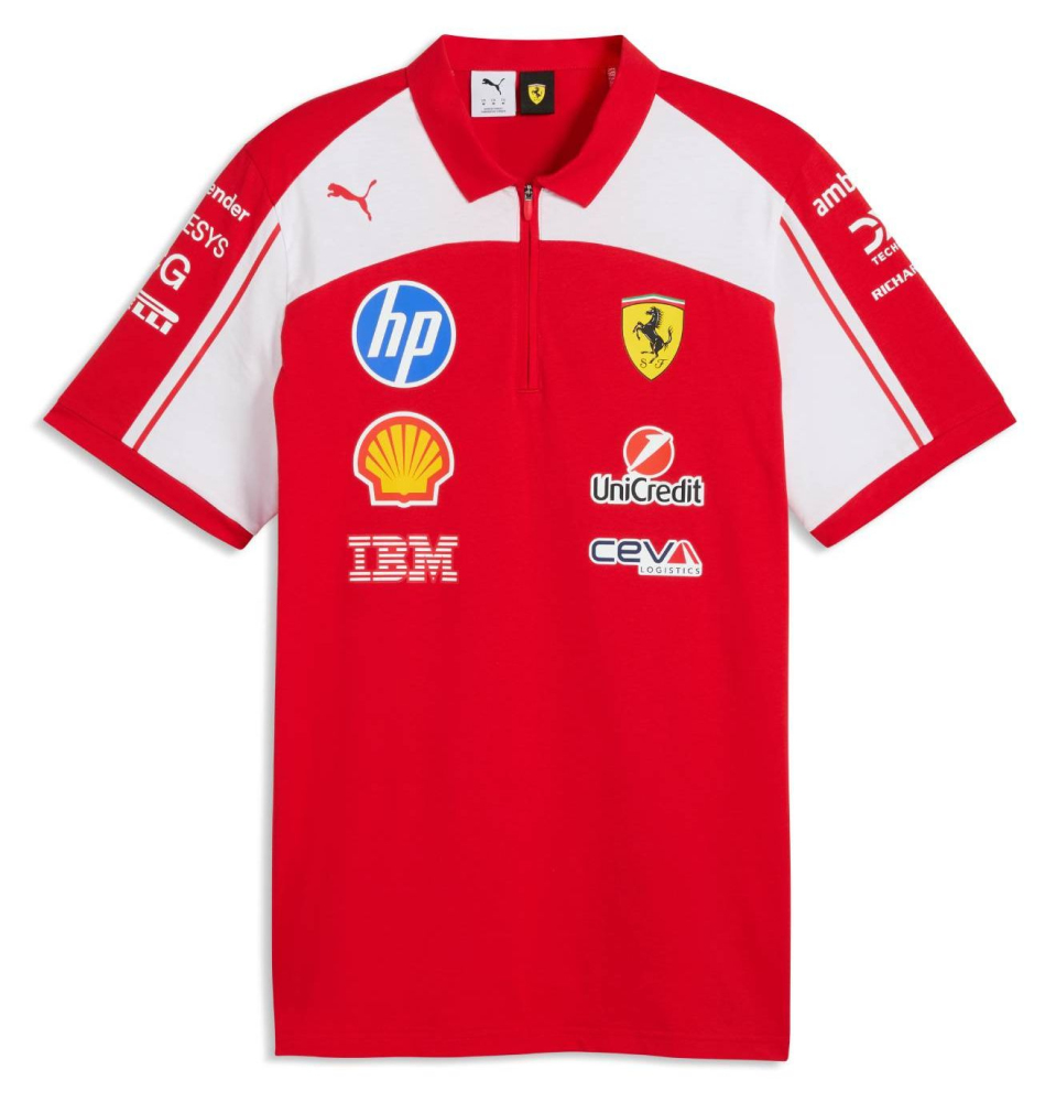 Týmové polo tričko Ferrari. V týmových barvách stáje Ferrari, se znakem Scuderia Ferrrari a logy sponzorů. Vyrobeno z vysoce kvalitní bavlny. Ferrari F1 Mens Team Polo Shirt red.