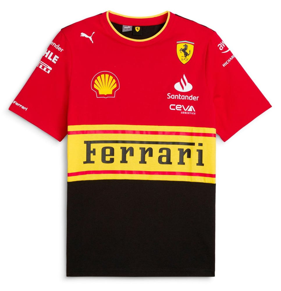 Týmové tričko Scuderia Ferrari - MONZA. V týmových barvách stáje Ferrari, na přední straně logo Scuderia Ferrrari a loga sponzorů. Navrženo speciálně pro Velkou cenu Itálie v Monze. Tříbarevná edice vzdává hold Ferrari AF Corse - vítězi 24h Le Mans. Materiál : 100% bavlna. Ferrari F1 Men’s MONZA T-shirt.