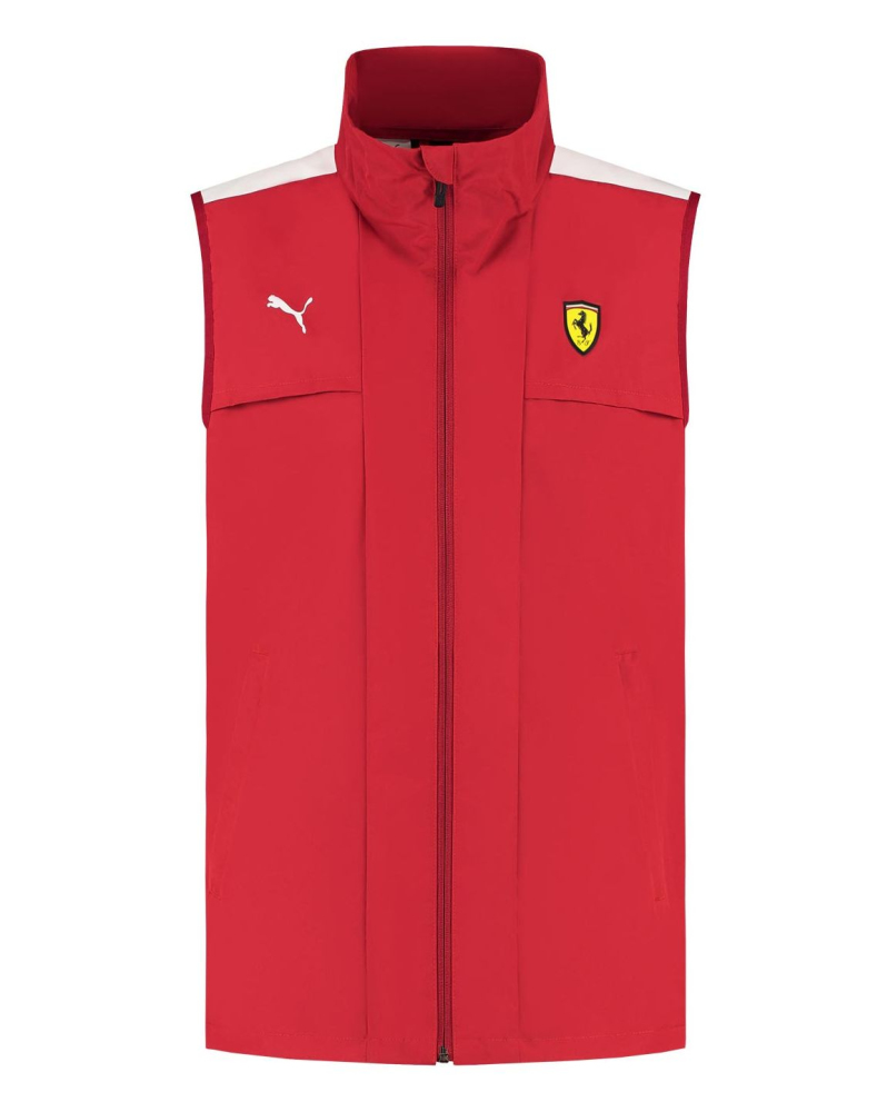 Pánská sportovní vesta Scuderia Ferrari. Barva červená, na hrudi znak Ferrari. Dešti odolné provedení. Vesta je se dvěma bočními kapsami na zip. Materiál : polyester. Ferrari Mens Logo Gilet Red.